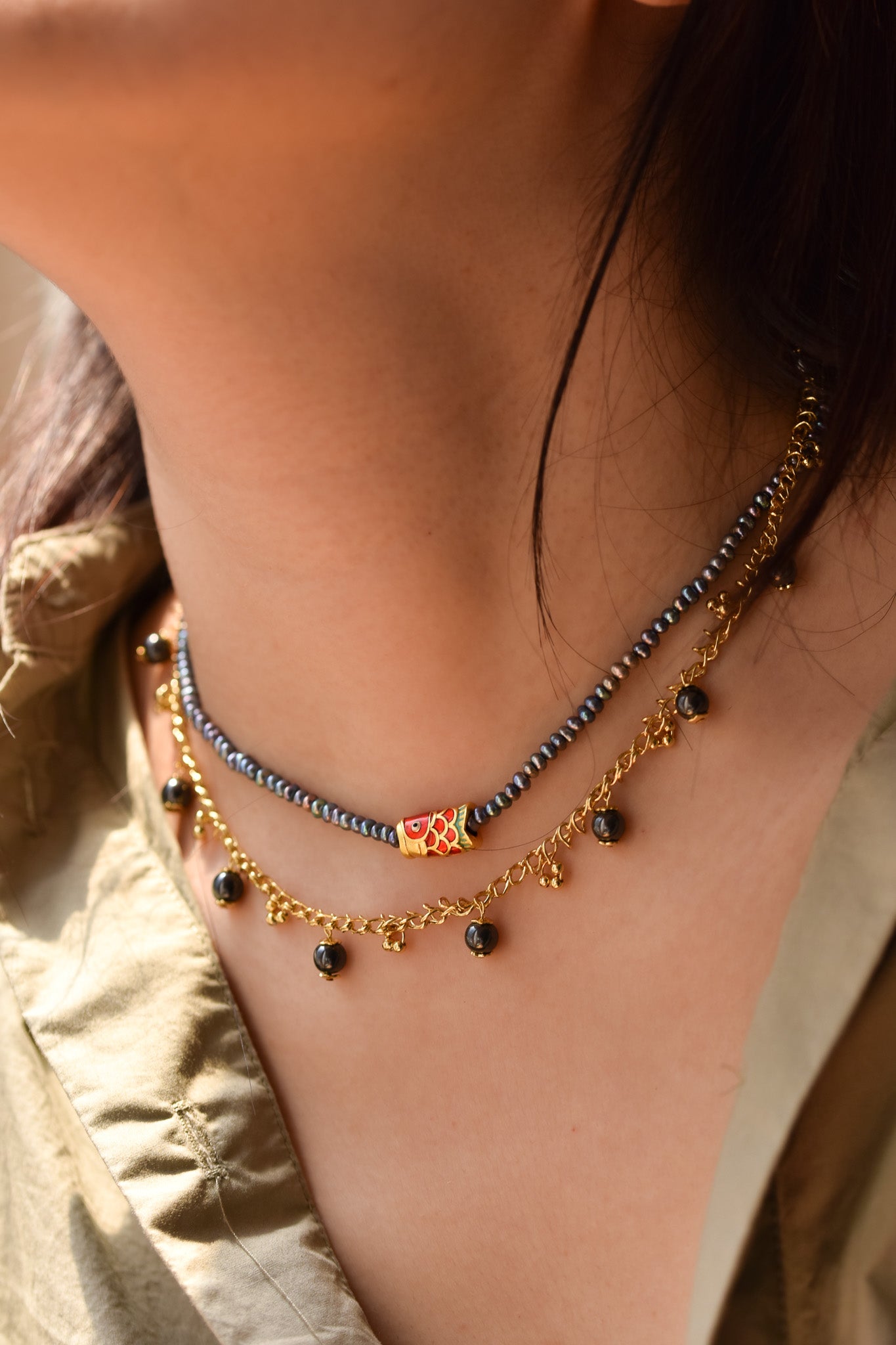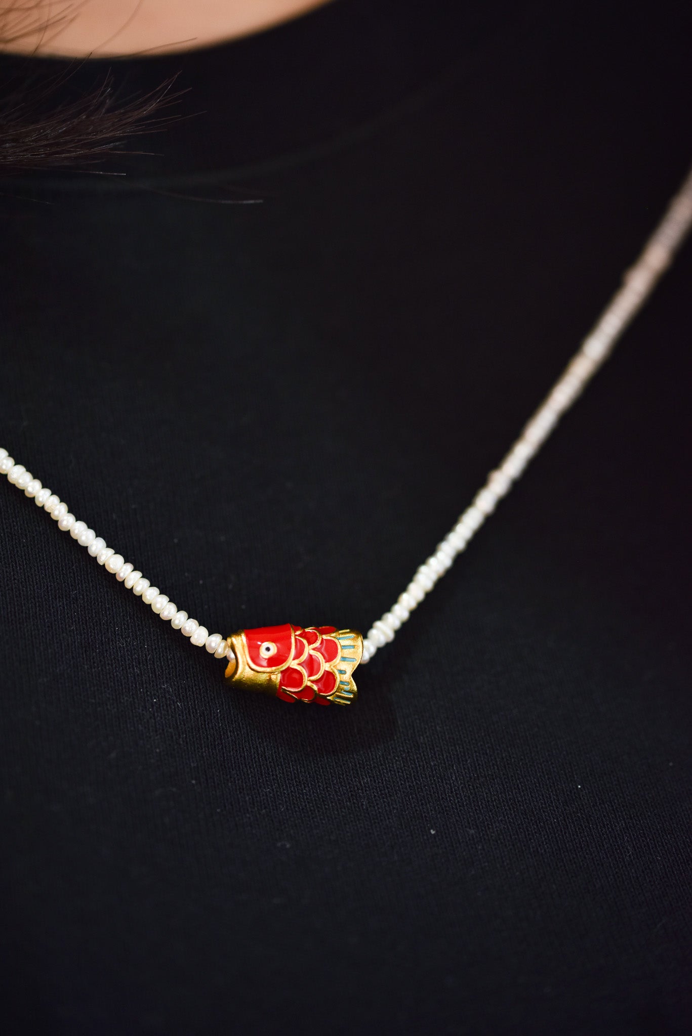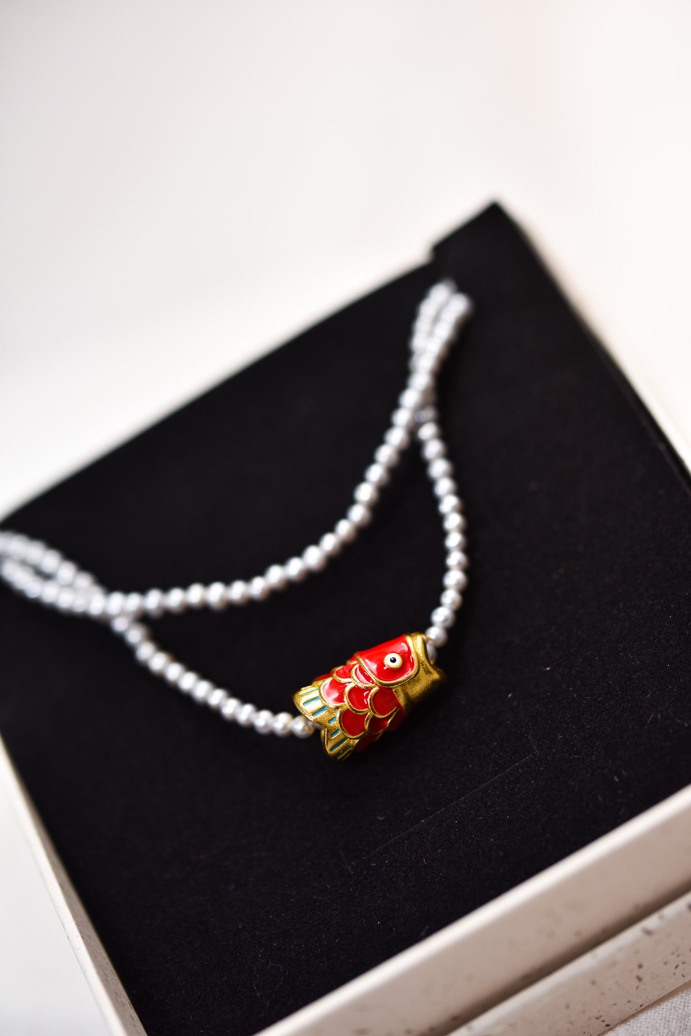 傻魚吐珠 (2mm米米珍珠鏈+魚魚charm)