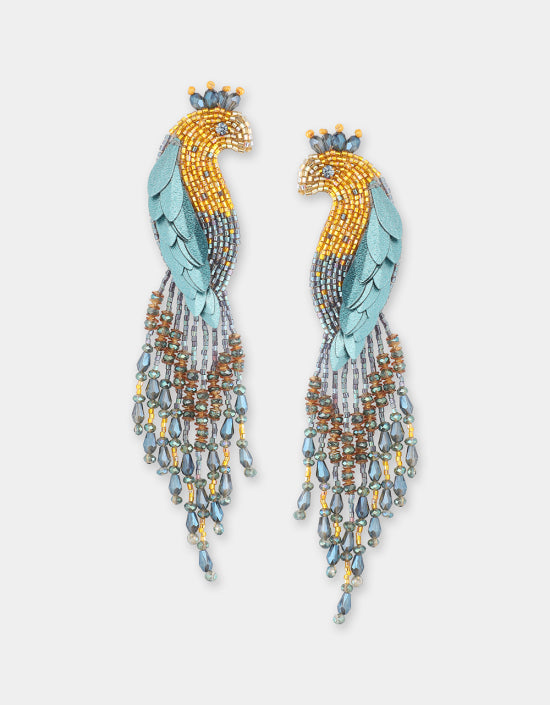 Peacock Earrings - Denim Yellow