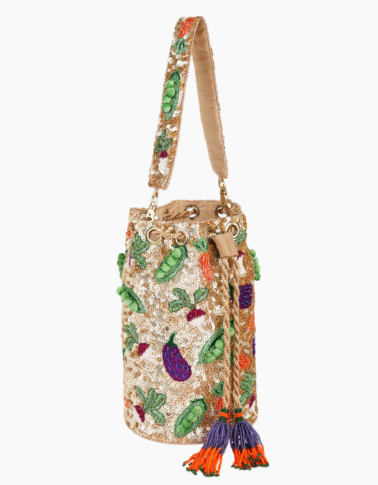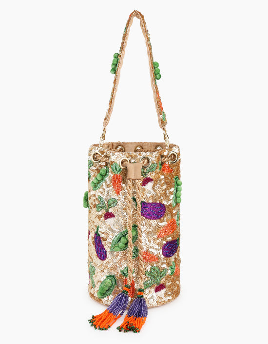 Finely embroidered by hand using multiple harmonious materials and tightenable on the top thanks to a braided lace, this timeless bag will undoubtedly become your favorite!